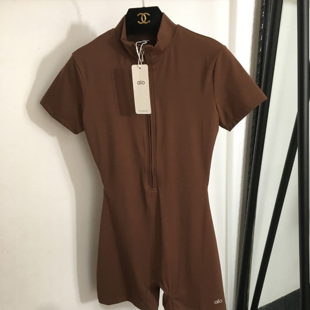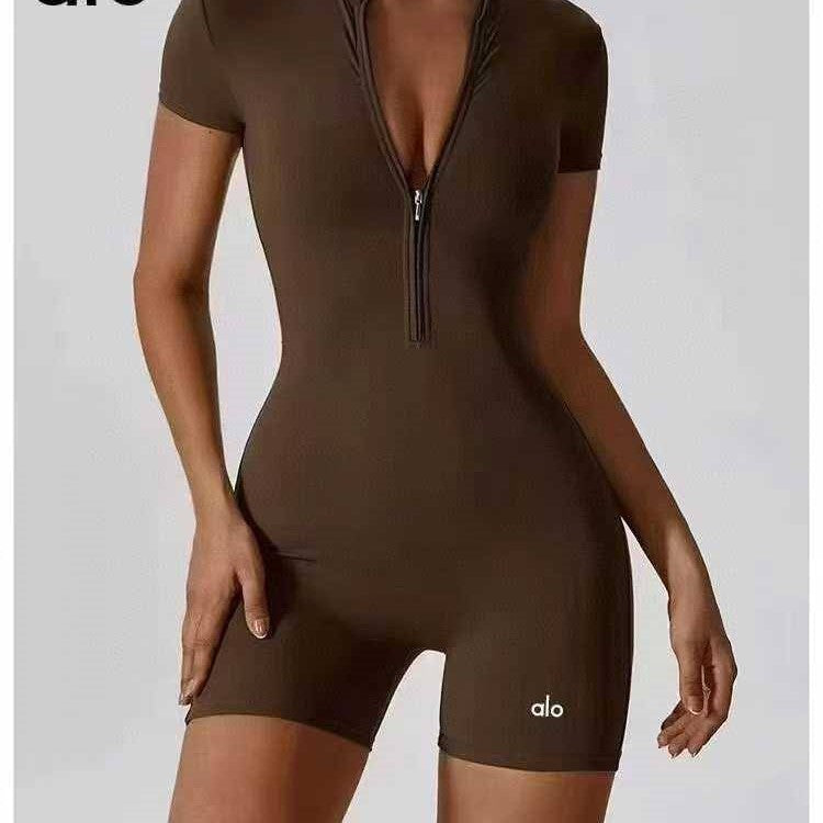 בגד גוף יוגה לנשים עם רוכסן חצי ועמודון – אופנה ספורטיבית צמודה