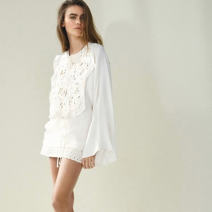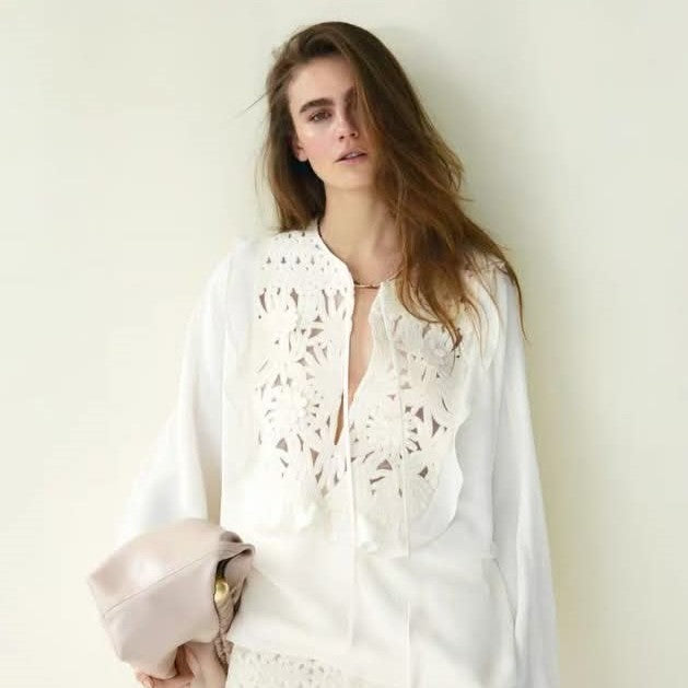 חולצת נשים לוס תחרה משולבת עם שרוך – אופנה 2025