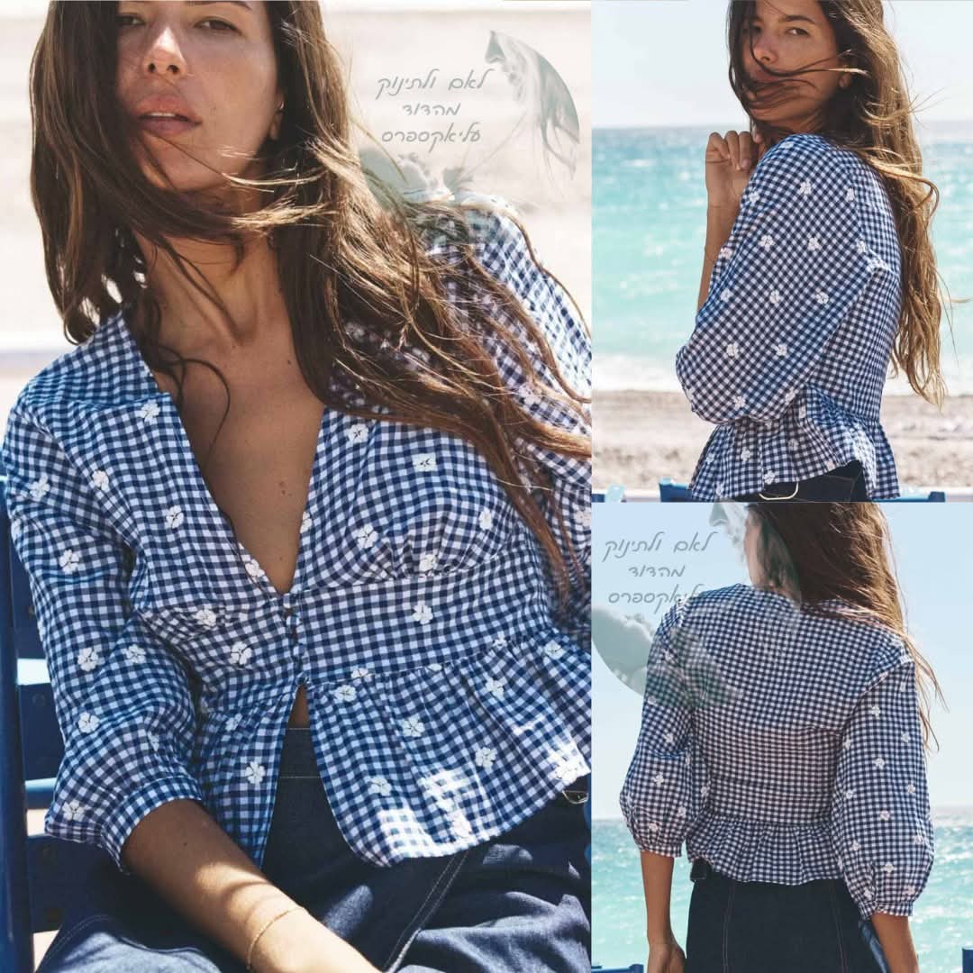 חולצת ZA רה! בגזרה בוהו-שיקית קלאסית של כחול-לבן משובץ – בשילוב רקמת פרחים מוש! 😍 מידות : XS - L האתר 100% מאובטח לתשלום !