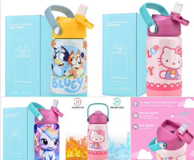 חזרנו למלאי !!9 בקבוקים בלבד של בלואי !!!מהרו לפני שלא ישאירו כלום !!חסכונות מוקדמים לקיץ 🌸זה זמן קיץ 🏖🌞בקבוקי נירוסטה שומרי קורבלואי ובינגו / קיטי / חד קרןקש סיליקון350ML