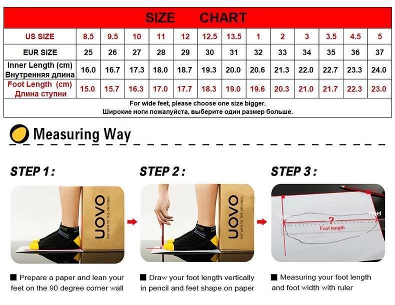 חנות המותג UOVO – סנדלים נוחים ועמידים לגדולים עם טבלת מידות מדויקת