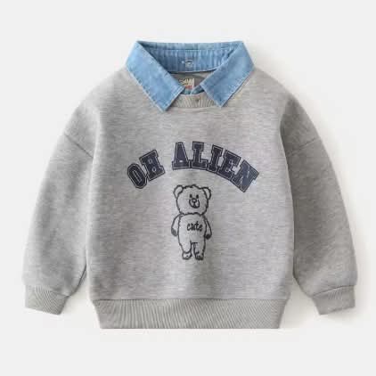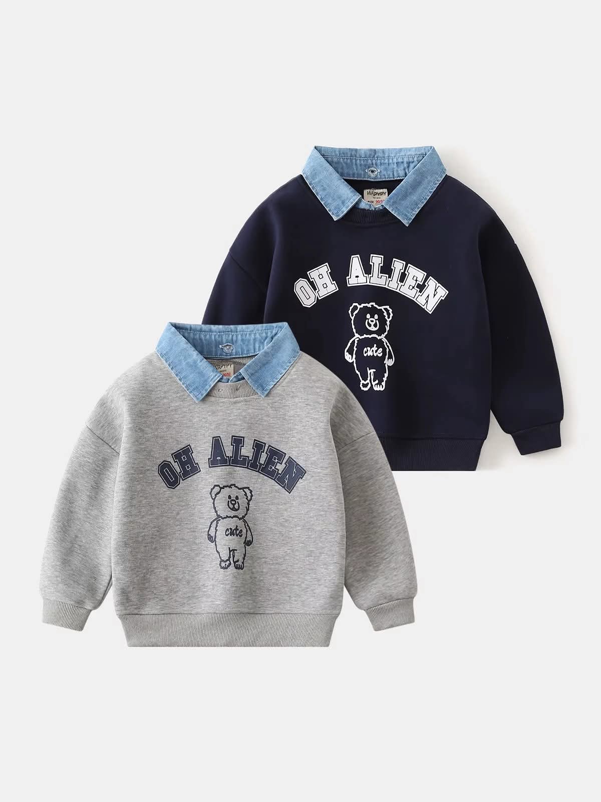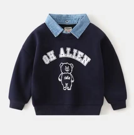סווטשירט פליס לילדים עם צווארון ג׳ינס – קולקציית חורף 2026
