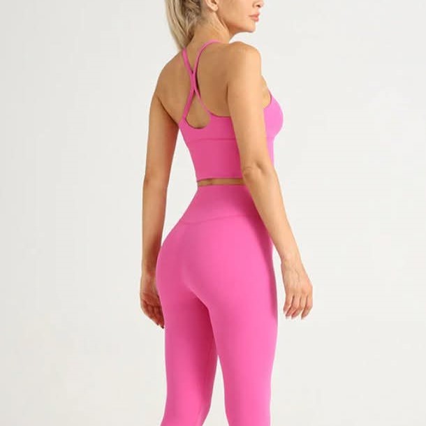 סט יוגה נשים LULU עם ברלט רצועות צולבות ומכנסי מותן גבוהה