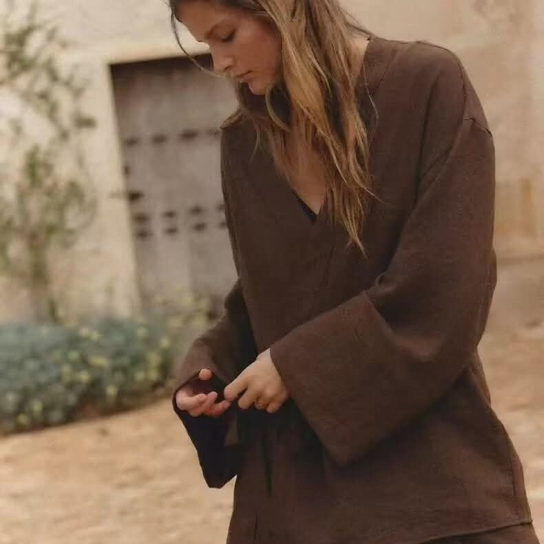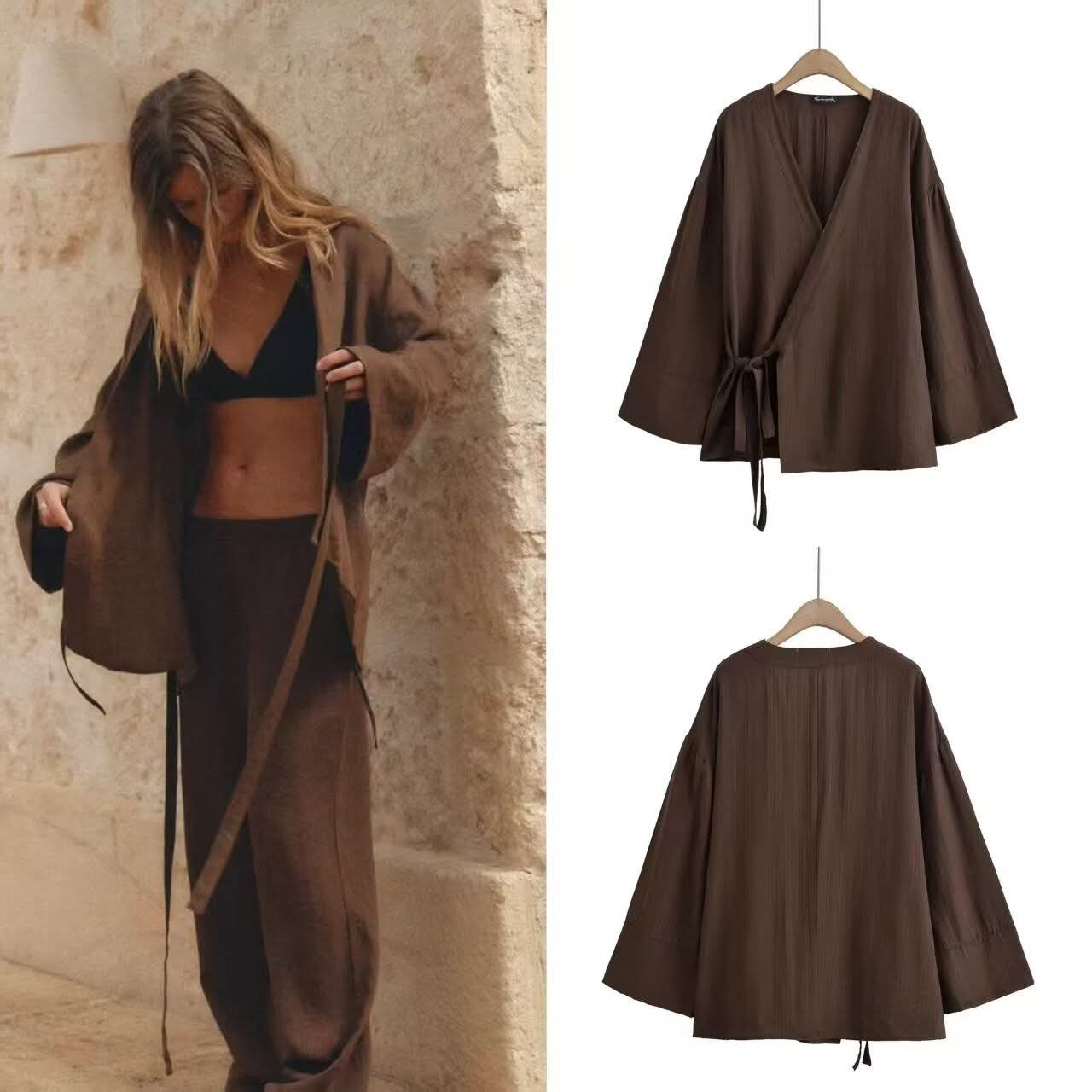 סט ZA רה חולצת מעטפת ומכנס מוששש🔥