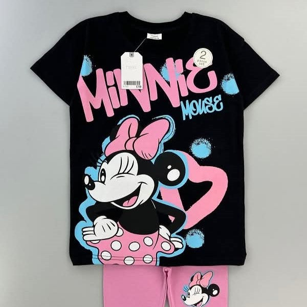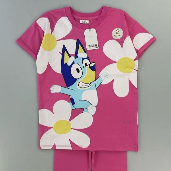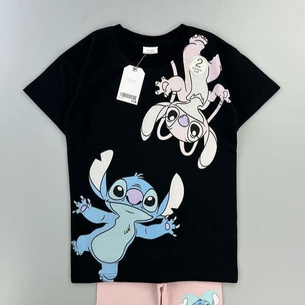 סט קיץ לילדות עם חולצה קצרה ומכנסיים קצרים עם הדפס אותיות