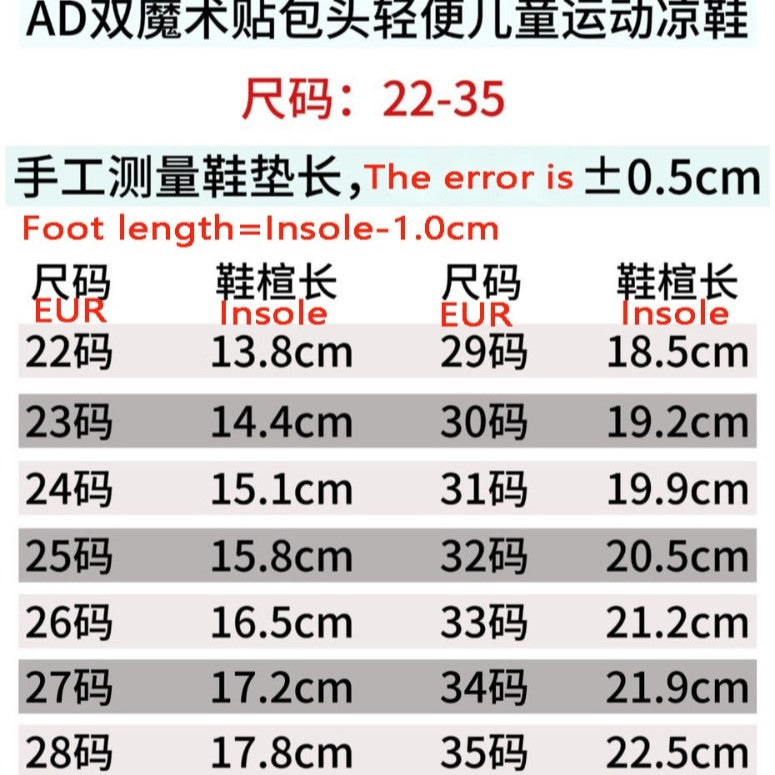 מידות 22 - 35 תואם לפי טבלת המידות בסמ