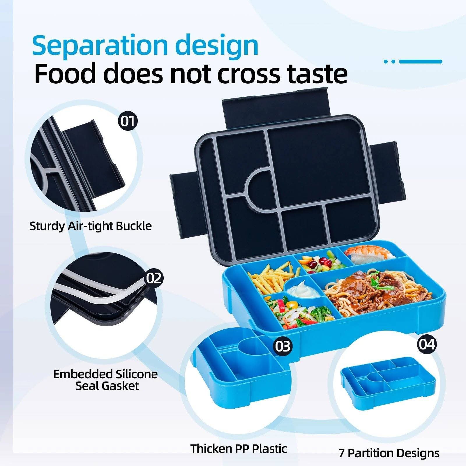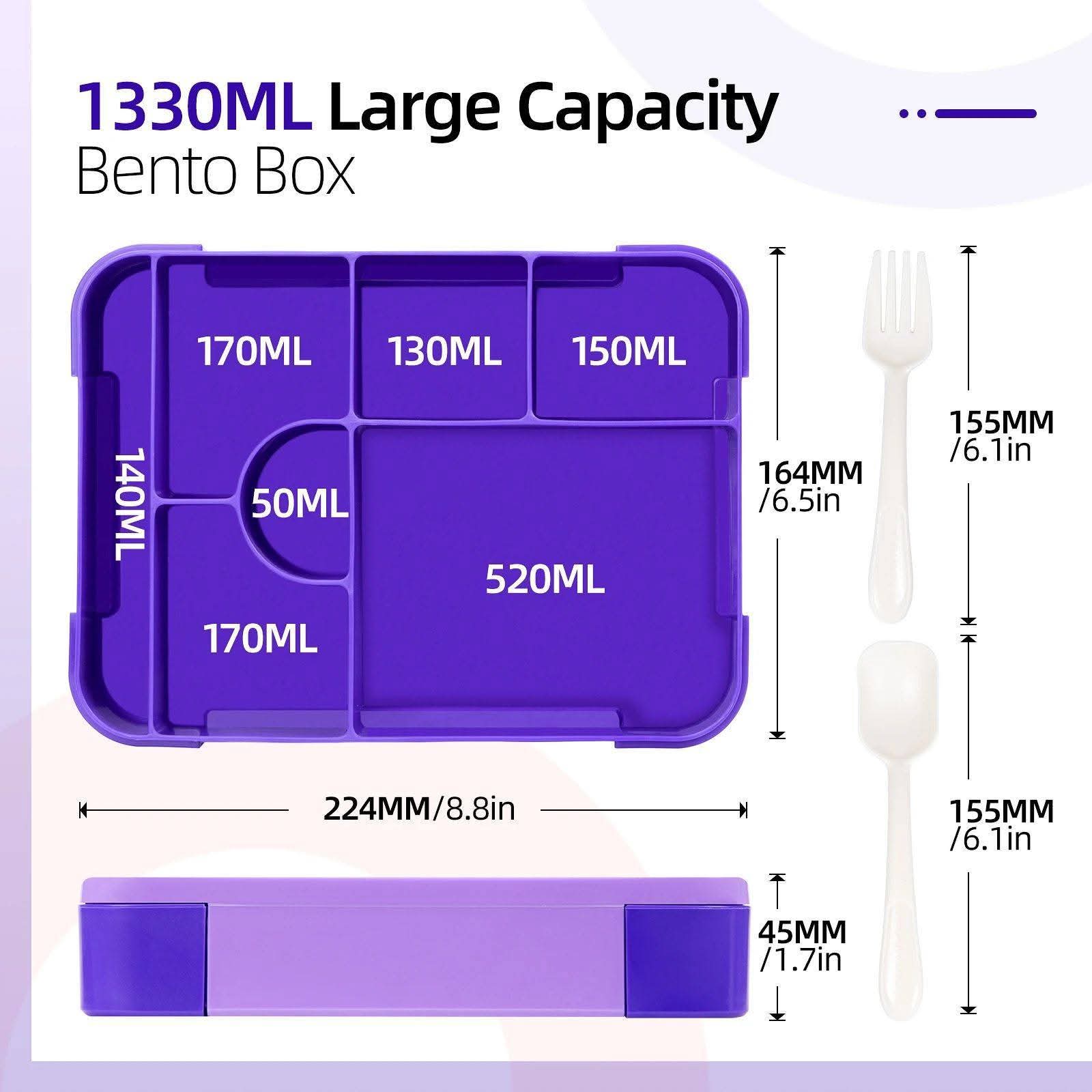 קופסאות אוכל מחולקות אטומות עם כפית ומזלג - מושלם לבית ספר