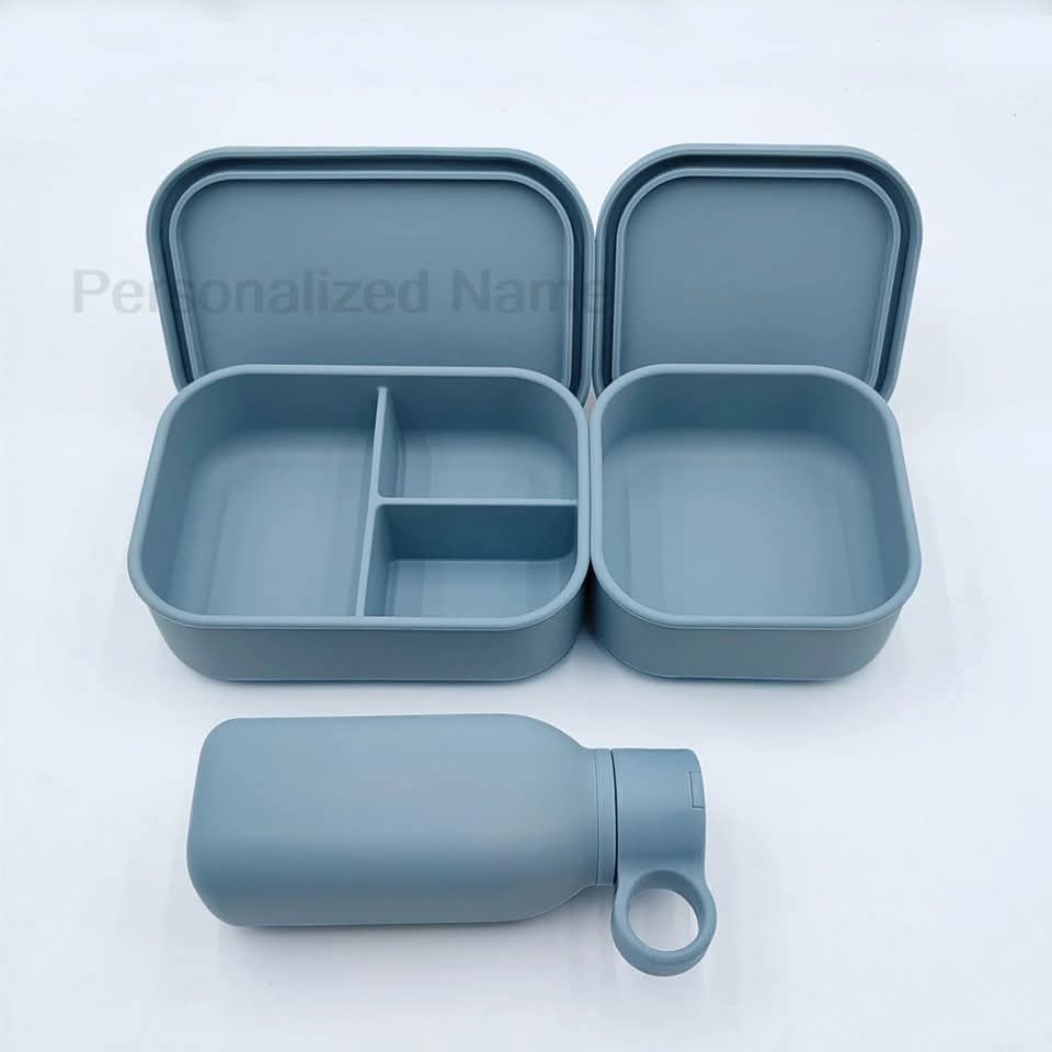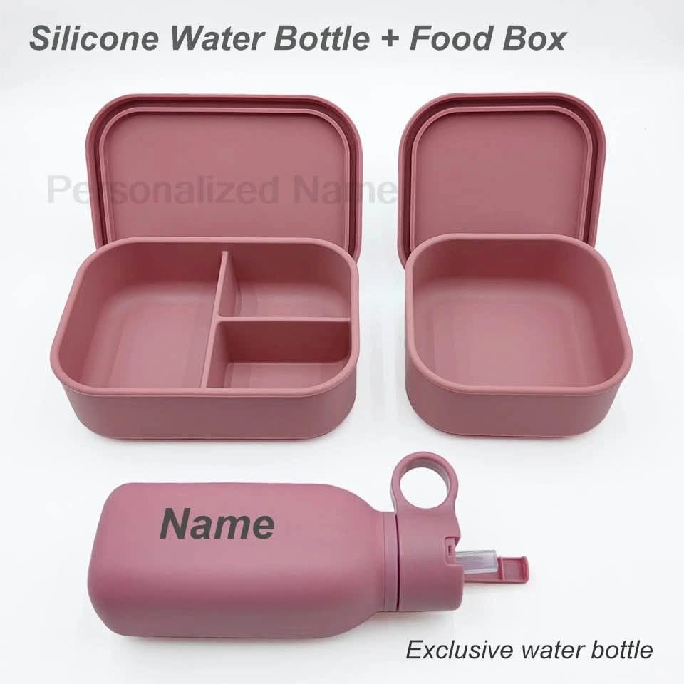 קופסאות אוכל סיליקון ובקבוקי מים נירוסטה עם שם אישי