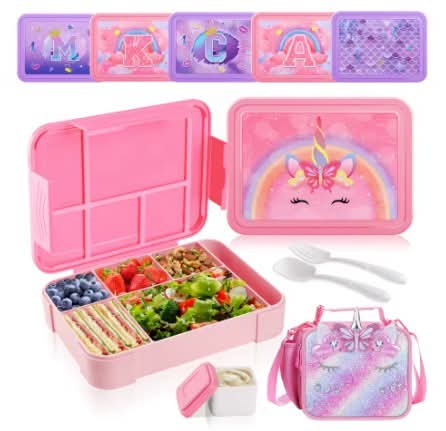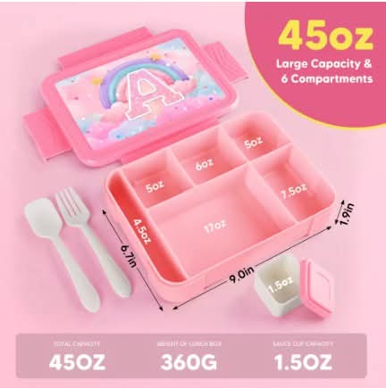 קופסת אוכל אטומה 5 תאים כולל סט סכום וקופסא קטנה לרטבים !😍