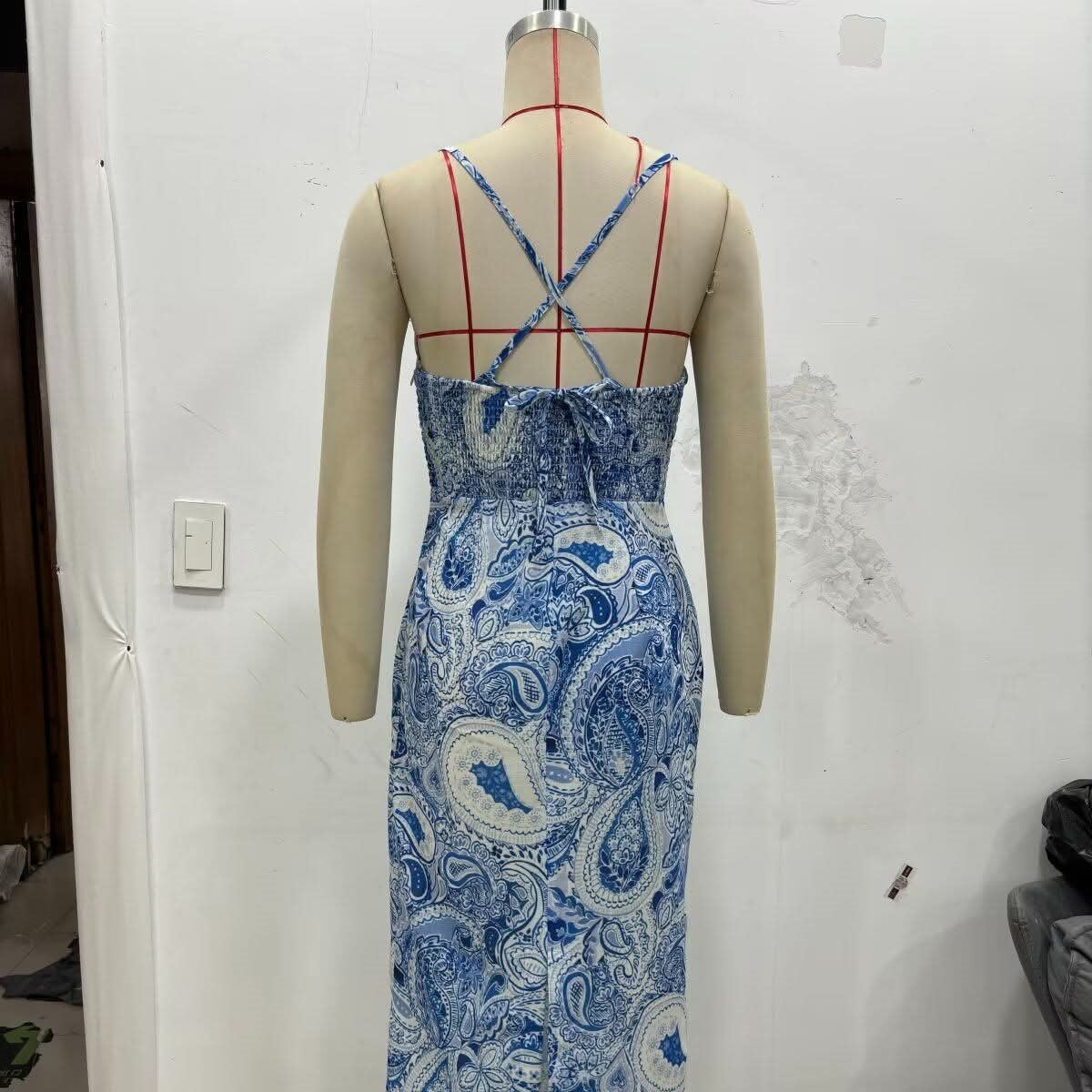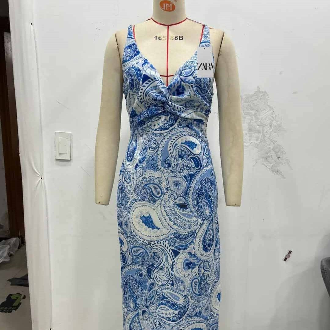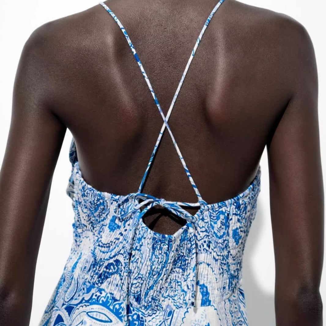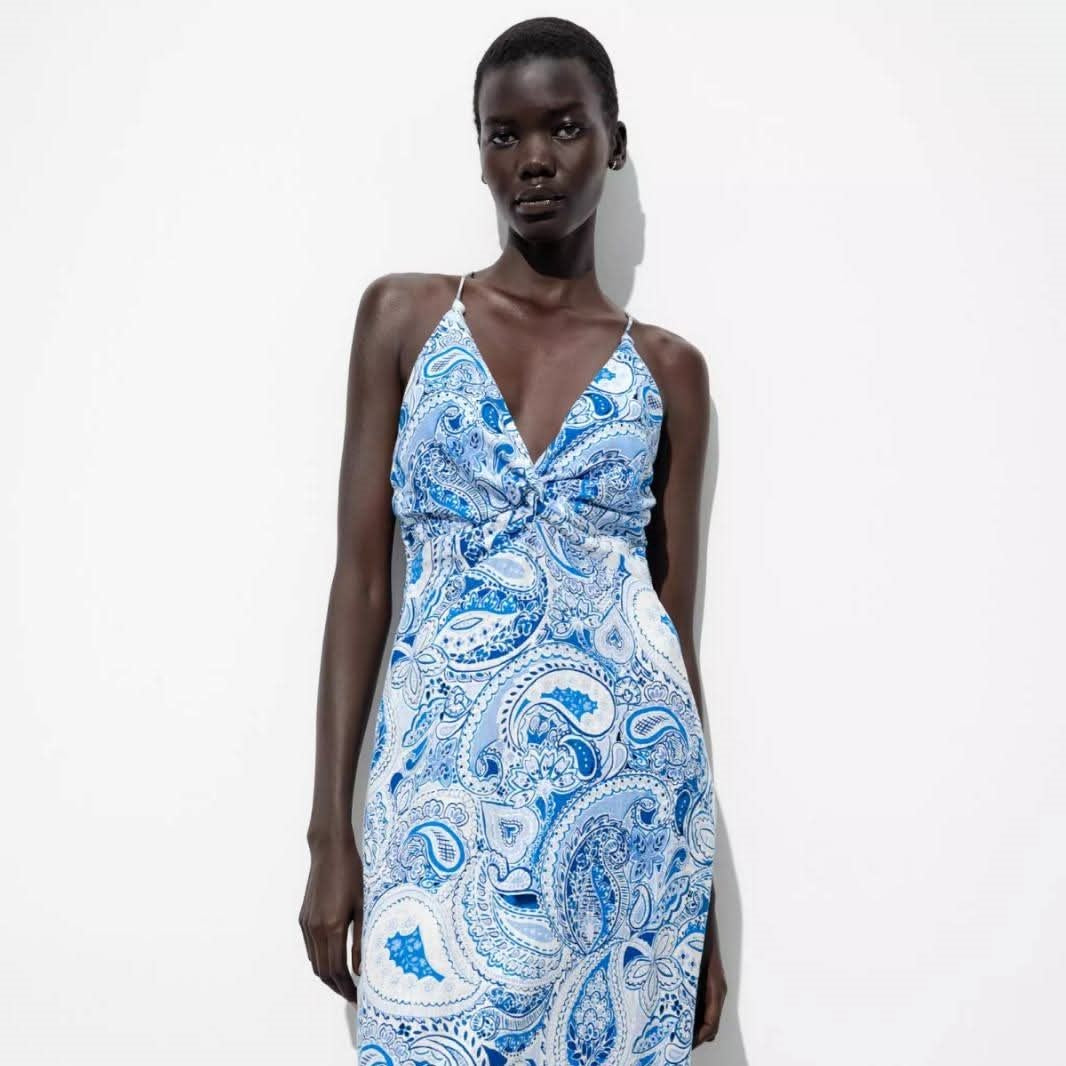 שמלת זארה קייצית לנשים עם כתפיות והדפס מידי