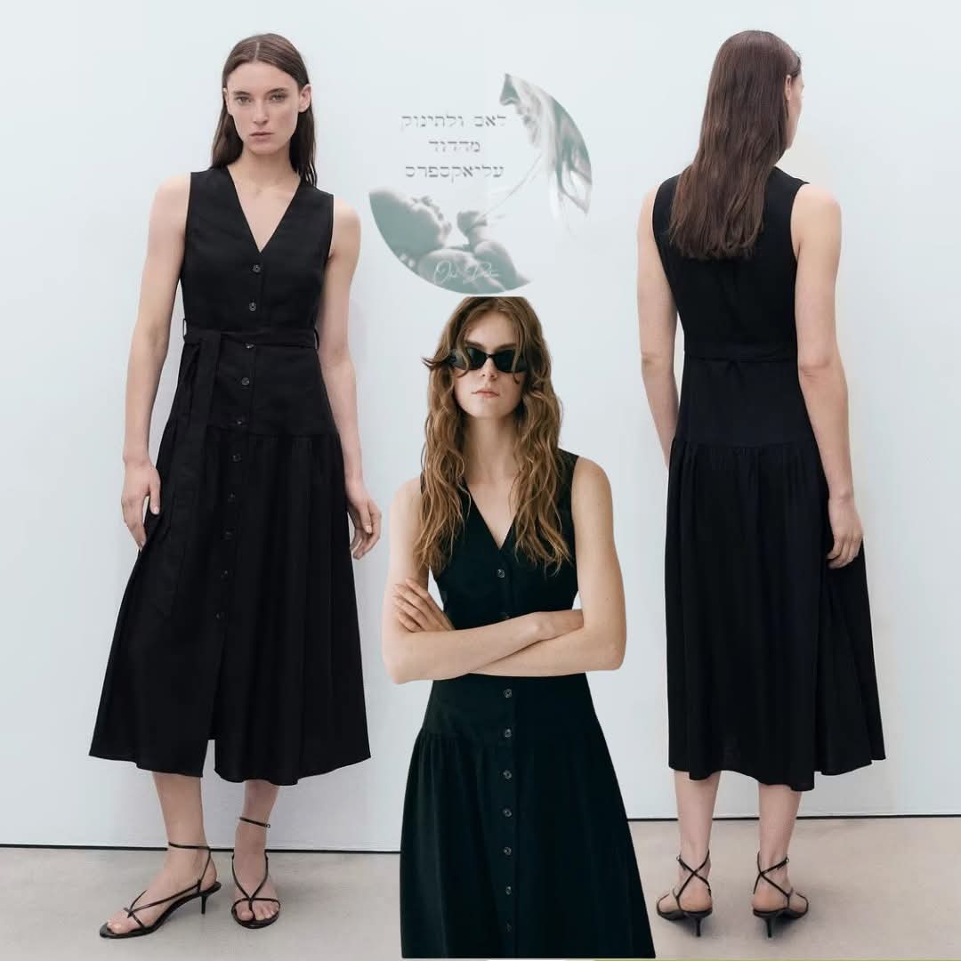 שמלת כפתורים עם חגורת קשירה ZA רה 🔥מידות : XS-Lהאתר 100% מאובטח לתשלום !