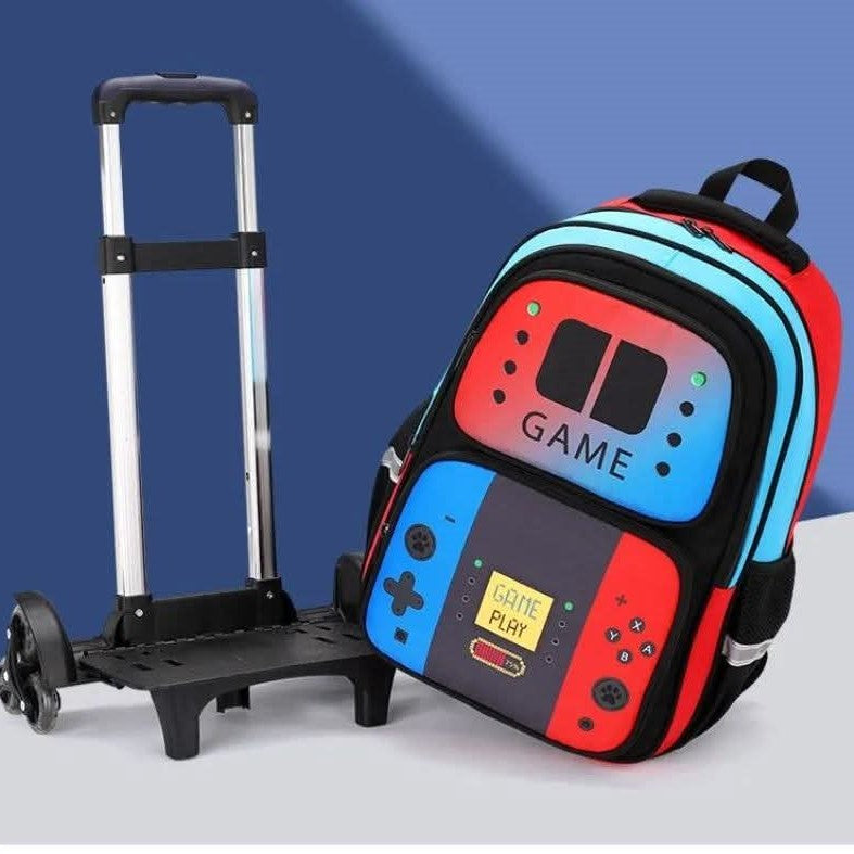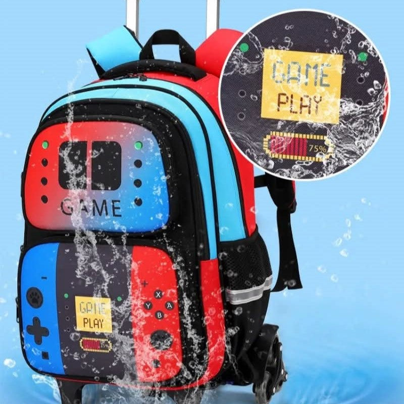 תיק בית ספר גיימרים עם גלגלים, גב אורטופדי, עמיד למים, כולל תיק אוכל וקלמר תואם